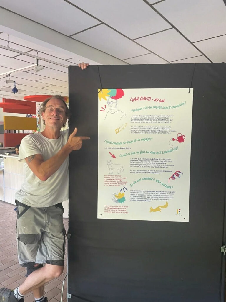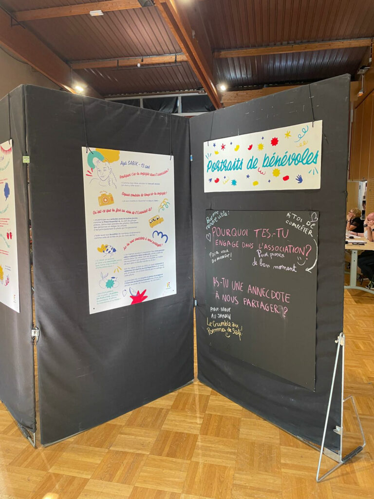 Exposition qui valorise plusieurs bénévoles investis dans l’association. Ces panneaux illustrent les témoignages de ces personnes et mettent en avant leur engagement dans la vie associative.